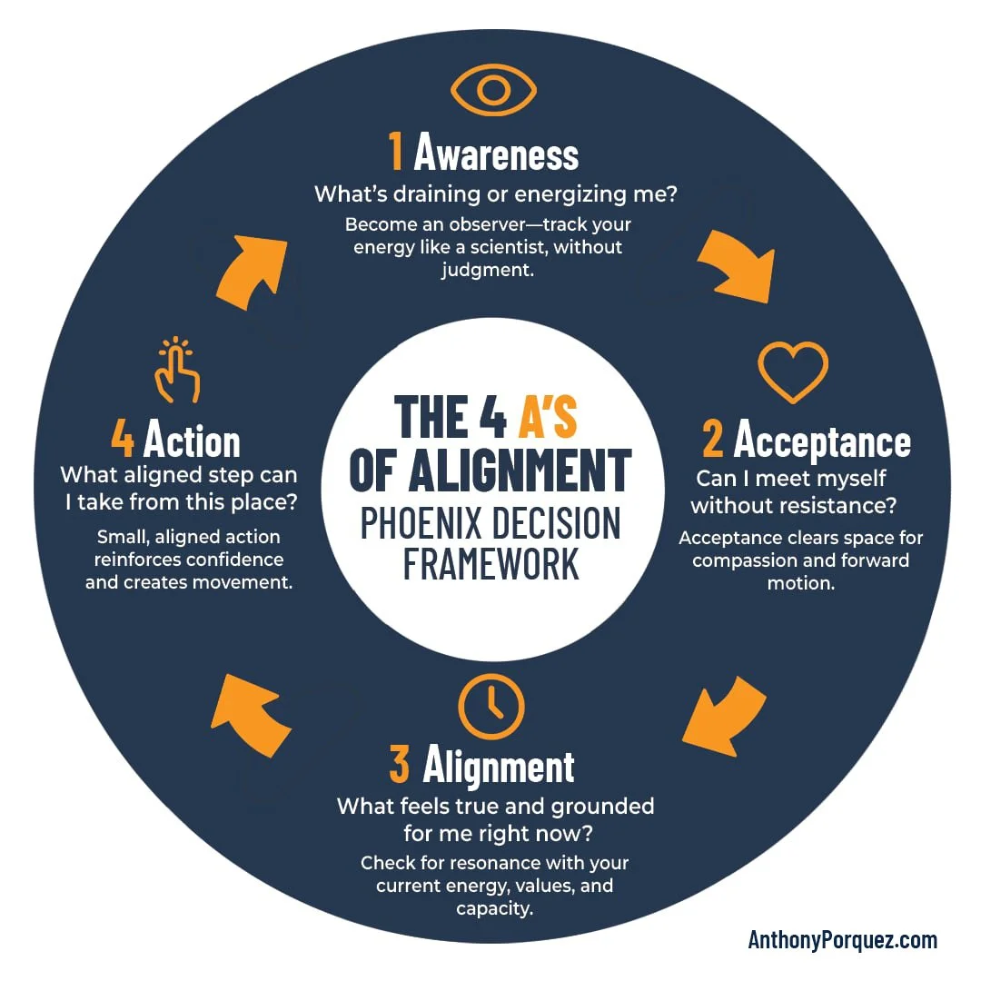 Blending Warrior and Monk modes gives you staying power. And the best way to practice that balance is through the 4 A’s of Alignment — a daily process for turning emotional mastery into practical boundaries.